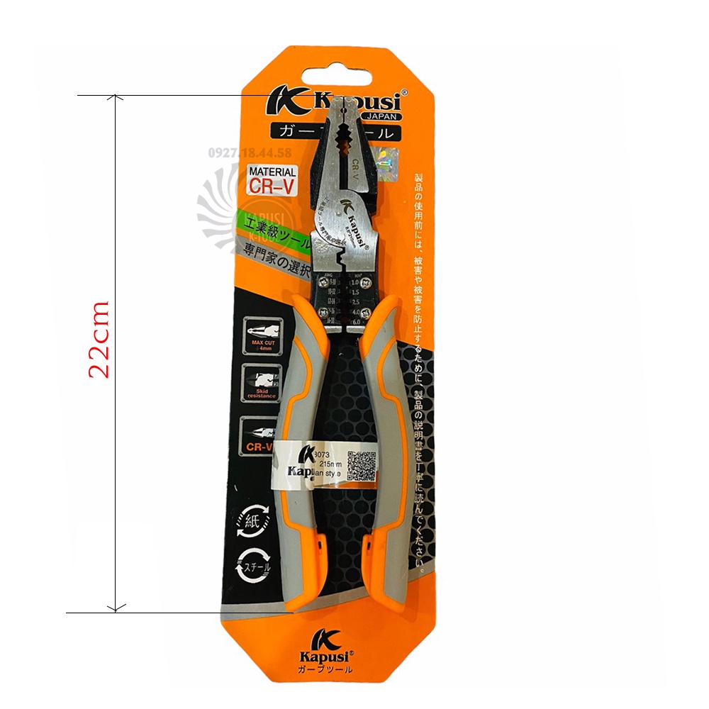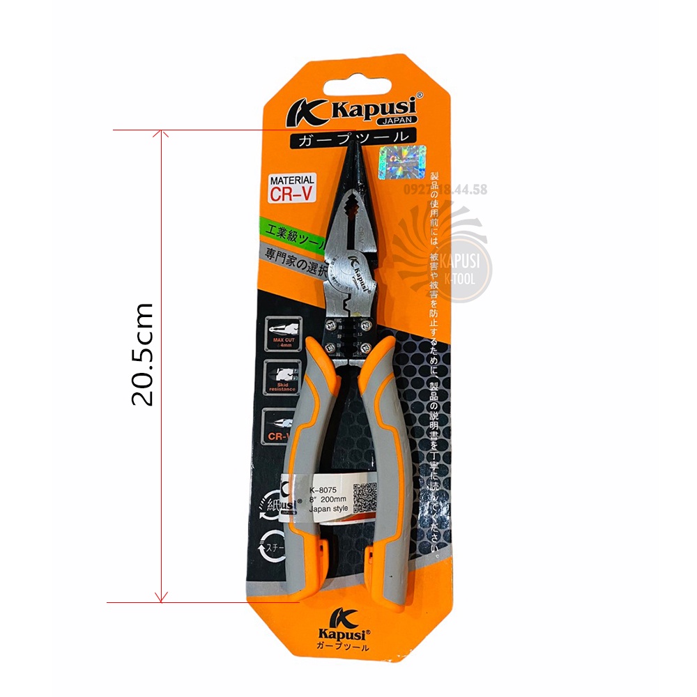 * Thông tin sản phẩm Kìm điện – kìm cắt - nhọn kìm đa năng công nghiệp Nhật Kapusi JAPAN thép CR-V cao cấp, thiết kế tiên tiến, chuyên nghiệp:- Thương hiệu: Kapusi JAPAN