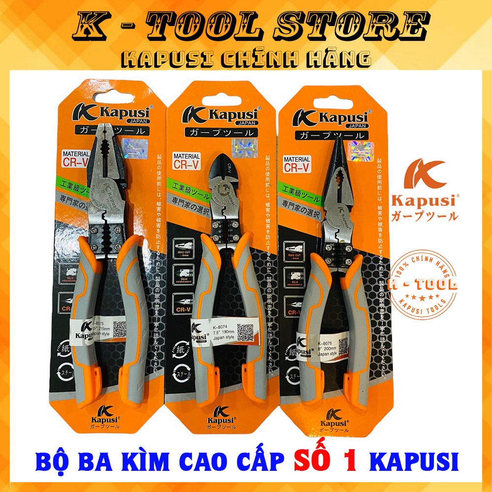 Bộ ba kìm cắt kìm điện kìm nhọn đa năng Nhật Kapusi JAPAN thép CR-V cao cấp, thiết kế tiên tiến, chuyên nghiệp số 1