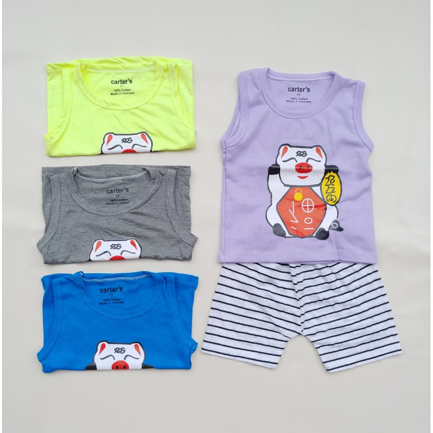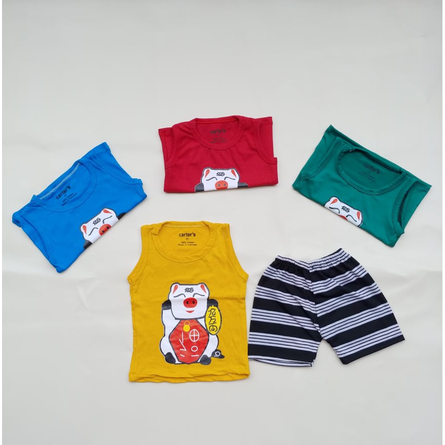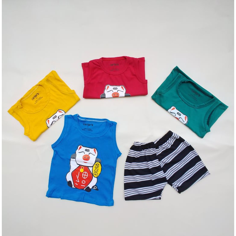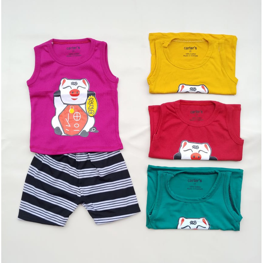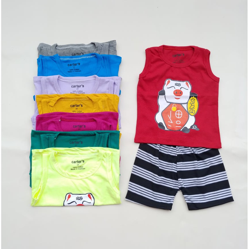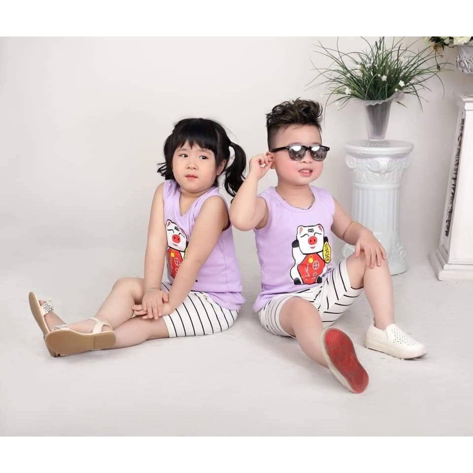 Năm con heo mặc đồ con heo cho may mắn nha các mẹ ^^!Bộ hè in hình heo may mắn, màu sắc phong phú bé trai bé gái đều mặc được ạ!