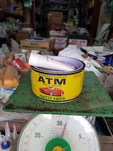 Matít vàng bả mỏng "ATM" là một hợp chất đặc biệt gồm hai thành phần, được đặc chế từ nguyên chất Polyester Resin 100% và chất làm cứng Hardenner . Đây là lọai matít bả mỏng có chất lượng tuyệt hảo chuyên dùng để sửa chữa và tân trang những khiếm khuyết trên kim lọai như thân xe ôtô , xe máy, hoặc trên các bề mặt khác bằng gỗ....., giúp tái tạo lại bề mặt của vật sử dụng được liền láng , đồng nhất, mới đẹp và đem đến sự hài lòng, thỏai mái cho chủ nhân . Matít bả mỏng "ATM" dễ sử dụng, dễ xả nhanh , khô nhanh và hiệu quả cao với khả năng kết dính và dẻo dai tuyệt vời.HƯỚNG DẪN SỬ DỤNG :
