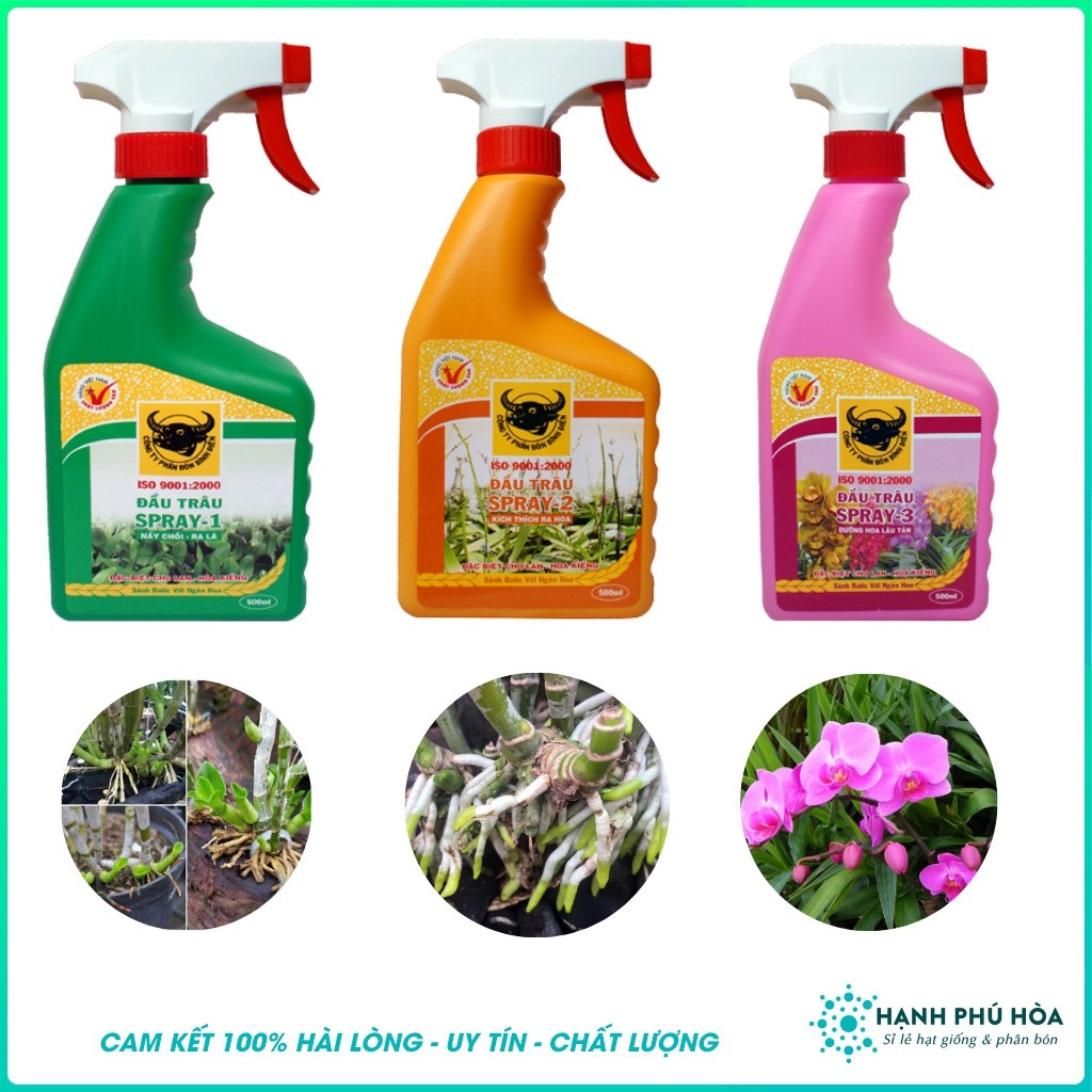 Giới thiệu Bộ Ba Phân Bón Lá Cao Cấp Đầu Trâu Spray 1,2 & 3 500ml/Chai- Chuyên Hoa, Cây Kiểng, Dưỡng Hoa Lâu Tàn, Dạng Xịt