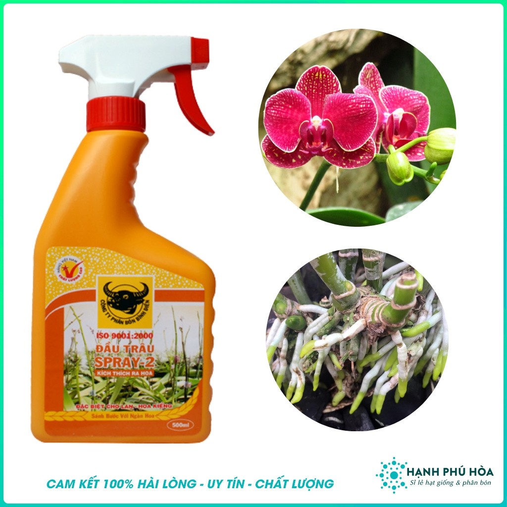 Phân bón Đầu Trâu SPRAY 2 với thành phần là các chất dinh dưỡng cân đối cùng các vi lượng thúc đẩy các loại cây như hoa Lan, bonsai ra rễ khỏe, tốt cây, kích thích ra hoa, hoa nở to đẹp. Phân đã được bào chế sử dụng trực tiếp mà không cần pha loãng.