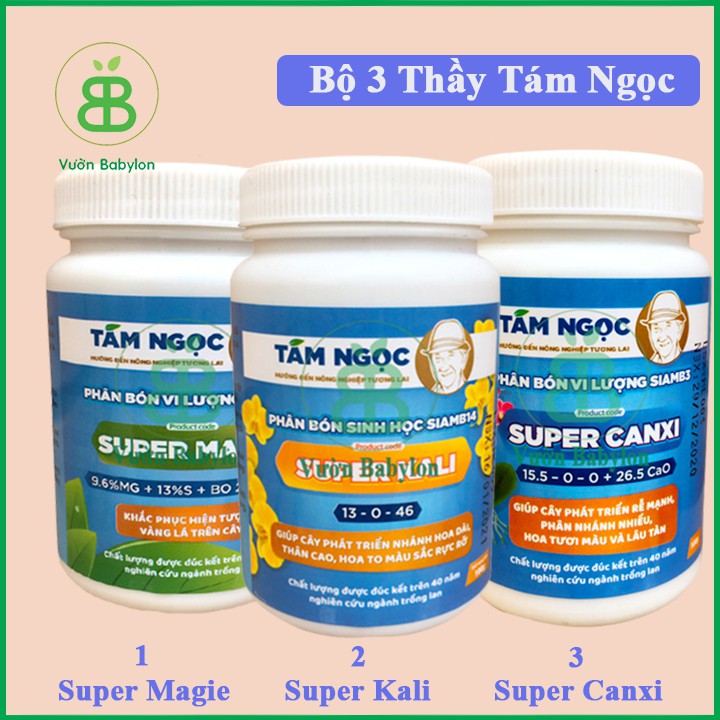 Vườn Babylon Xin Kính Chào Qúy Khách!Bộ Ba Phân Bón Super Magie - Canxi - Kali Hũ 100Gr
