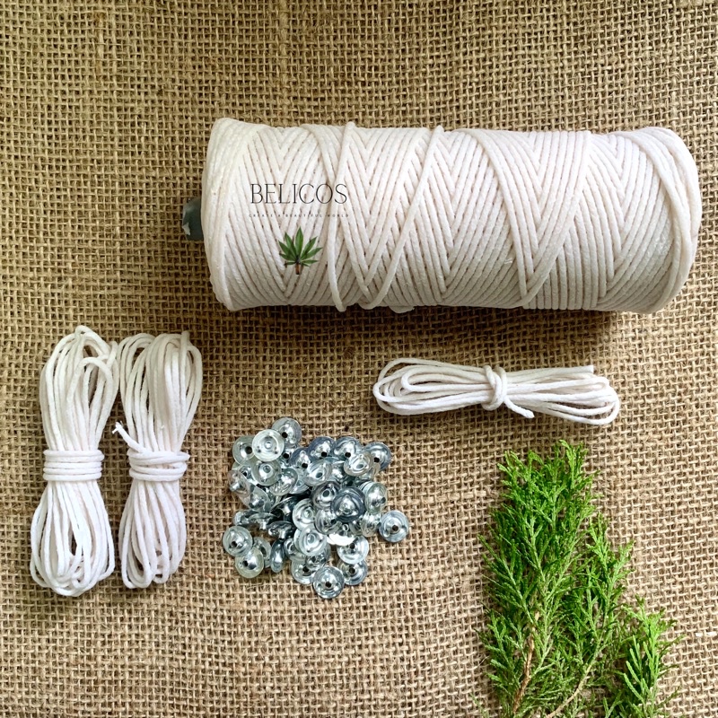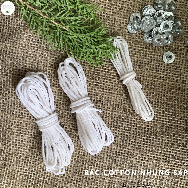 Set 20 gr bấc cotton nhúng sáp (Khoảng 7m) + 20 gram đế sắt (Khoảng 80 đế)