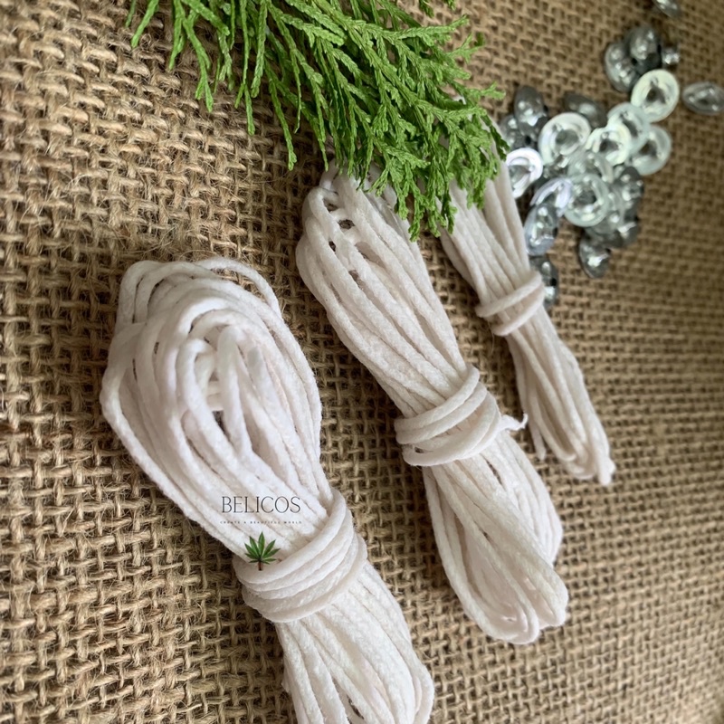 + Sợi cotton đan thành cọng tròn, đường kính 2,5mm vừa vặn với đế tim ∅ 2,5mm.