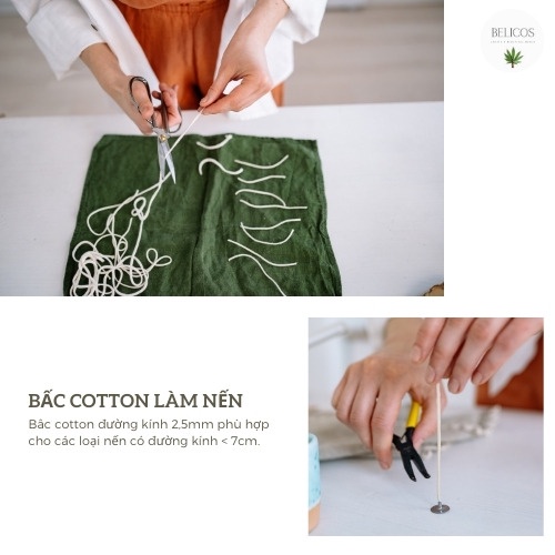 Giới thiệu Bấc Cotton Nhúng Sáp (Kèm đế sắt cố định) làm nến an toàn
