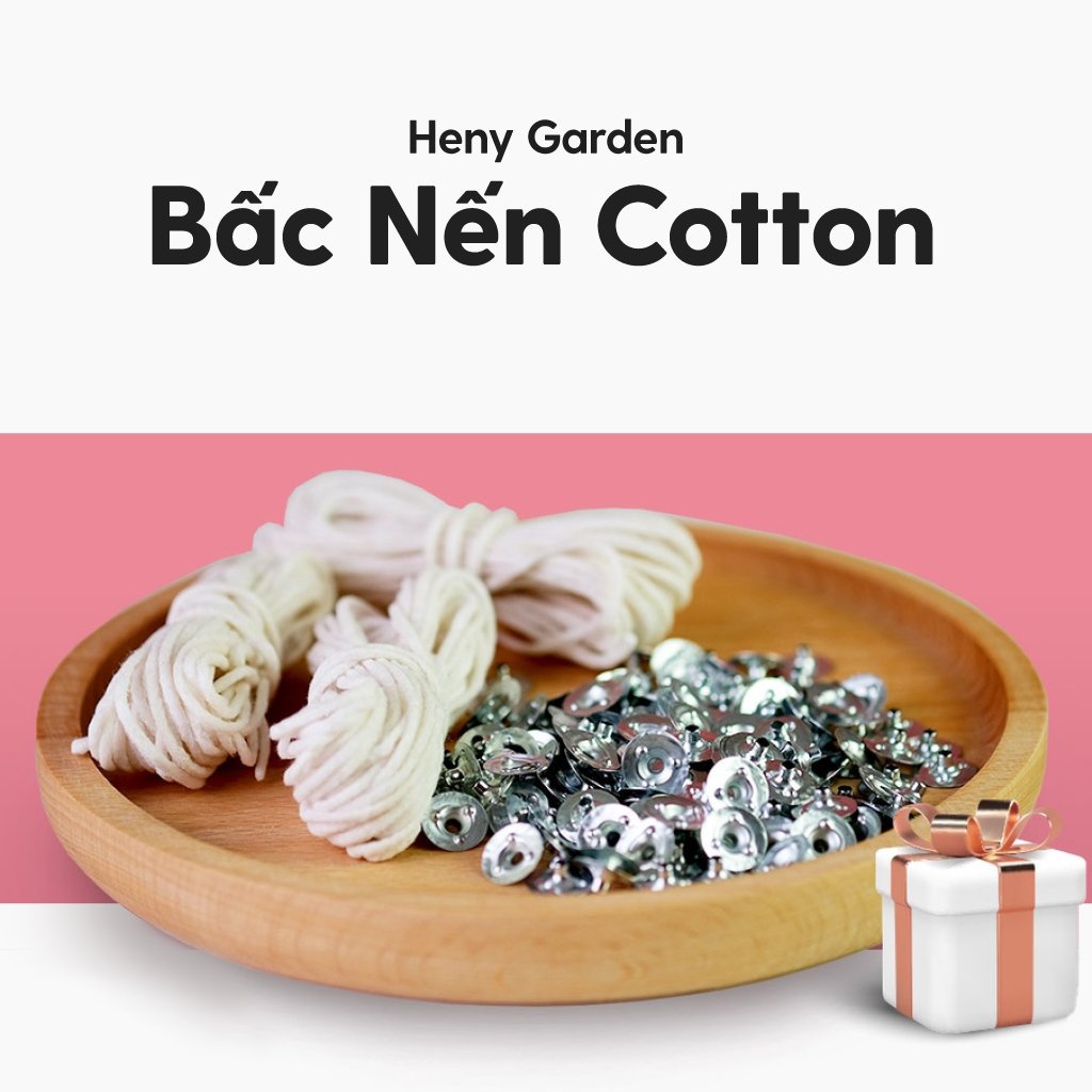 Bấc nến cotton là một trong những nguyên liệu cơ bản nhất để bạn có thể tự làm nến thơm tại nhà, bên cạnh sáp nến, tinh dầu thơm và một số vật dụng décor theo gu sở thích cá nhân.Bấc nến cotton Heny Garden là loại bấc sạch, không chứa lõi chì, được sản xuất từ nhiều sợi cotton bện lại với nhau tạo thành sợi bấc với ngọn lửa ổn định, cháy sáng và ánh lửa đẹp. Đây là dòng bấc nến cao cấp nhất hiện nay phù hợp cho các bạn mới handmade nến và thành công ngay lần đầu tiên.