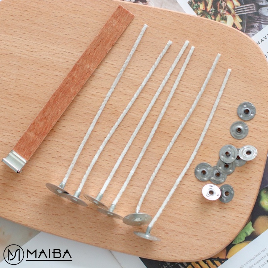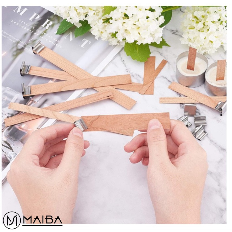 Bấc Nến Gỗ, Cotton Nhúng Sáp + Chân Kẹp Không Khói – Nguyên Liệu Làm Nến Thơm Cao Cấp MAIBA