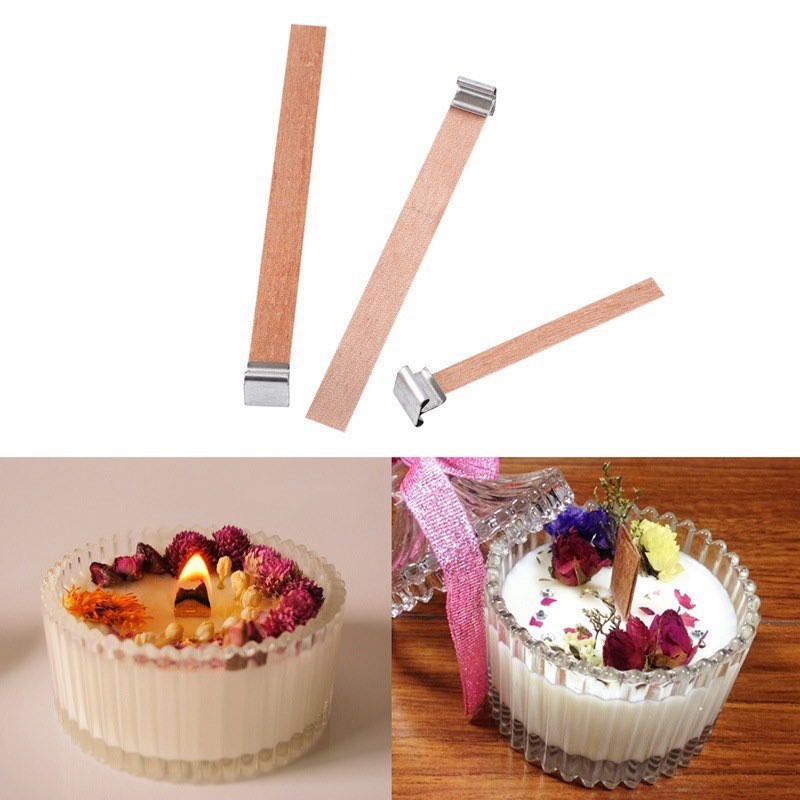 Bấc nến gỗ kèm đế set 10 cái (nhiều size)