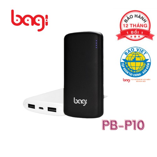 Giới thiệu [BAGI] PIN DỰ PHÒNG BAGI 10.000MAH ĐEN/TRẮNG P10 - HÀNG CHÍNH HÃNG