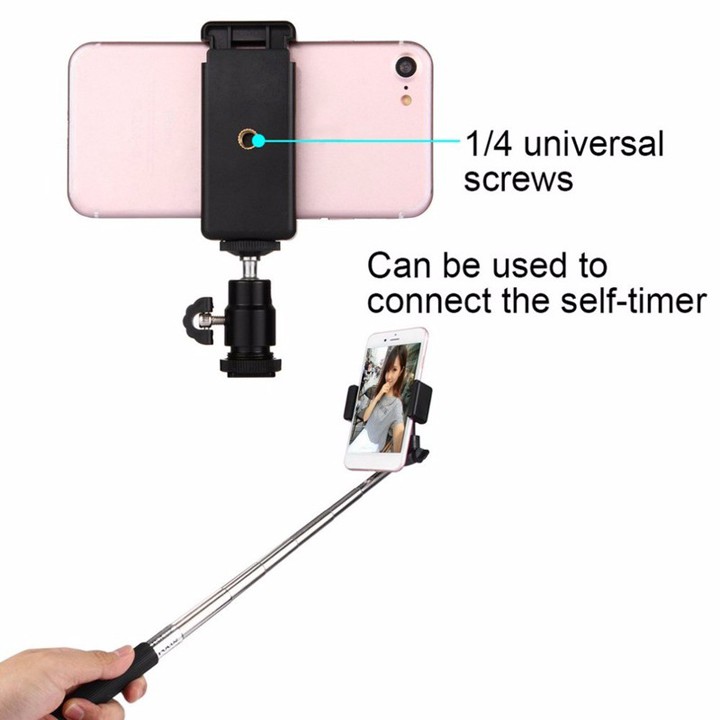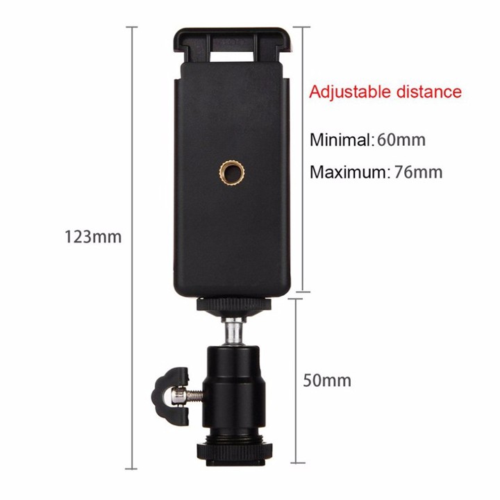 - Kẹp điện thoại có 2 ốc 1/4 ở 2 vị trí khác nhau giúp bạn cơ động trong việc chọn được góc độ phù hợp