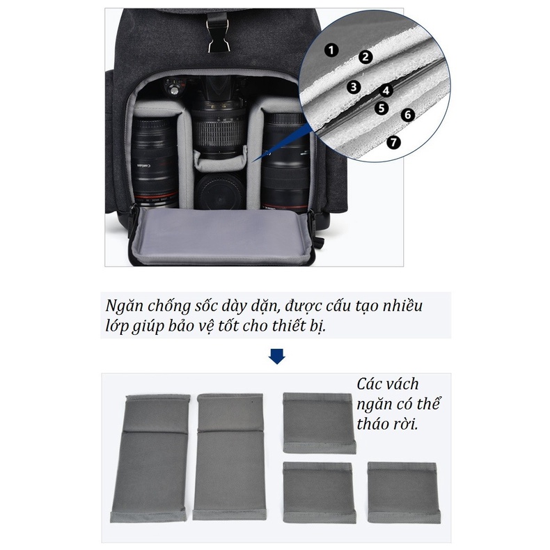 Balo đựng máy ảnh chuyên dụng Caden M8.