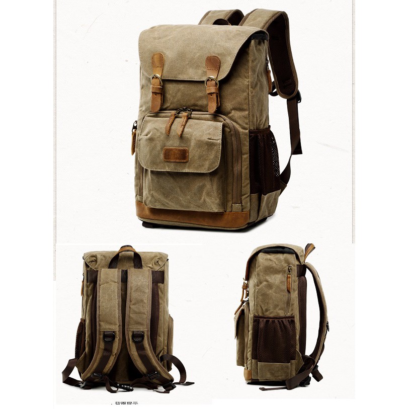 Balo có kiểu dáng cổ điển, được làm từ Canvas chống thấm nước chống mài mòn.Balo có phần dưới để máy ảnh, ngăn để máy ảnh có thể tháo rời. Phần trên balo để đồ, quần áo,..