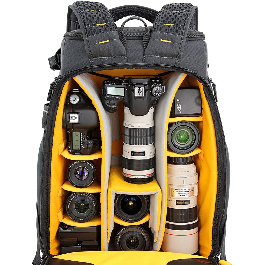 Balo máy ảnh, balo Flycam Vanguard Alta Sky 53ALTA SKY 53 có thể xem là một chiếc balo linh hoạt với đầy đủ chức năng tích hợp trong thiết kế nội thất linh hoạt. Bạn có thể lưu trữ tối đa đến 1-2 Pro DSLR với ống kính gắn liền (lên đến 300mm f / 2.8), 6-8 ống kính, 2 đơn vị đèn flash, với tất cả các phụ kiện liên quan + 1 Pro DSLR với ống kính kèm theo. Đồng thời, bạn có thể mang theo laptop 17 inch và cả máy tính bảng. Balo ALTA SKY 53 còn có thiết kế giữ chân máy tiên tiến.