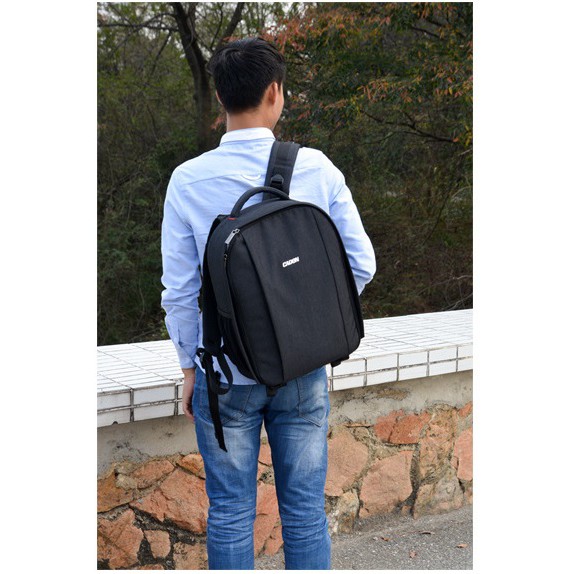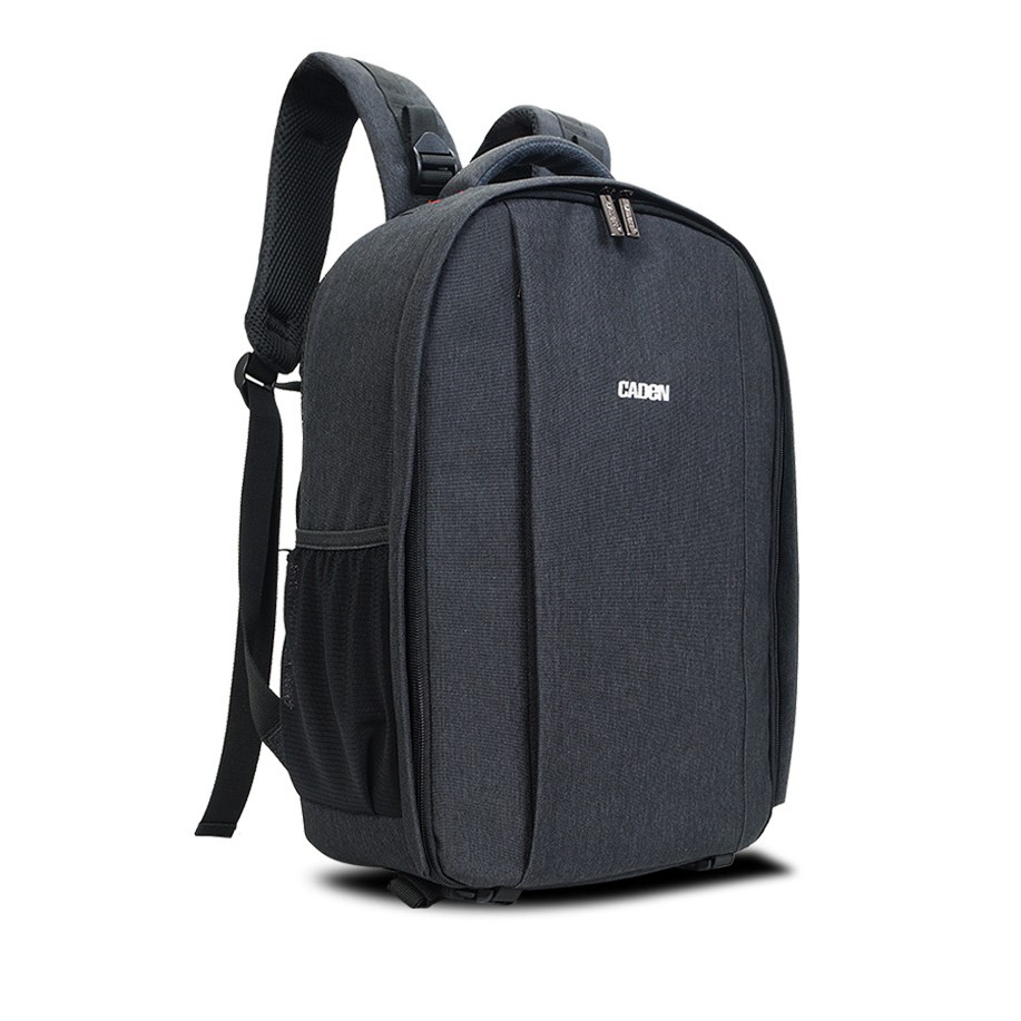 Balo máy ảnh Caden D10.Phần chia bên trong có thể điều chỉnh được để giữ máy và ống kính chắc chắn; phụ kiện bổ sung như túi đựng pin, dây jack, thẻ nhớ, bộ lọc hoặc nắp ống kính... hoàn toàn có thể để vừa.