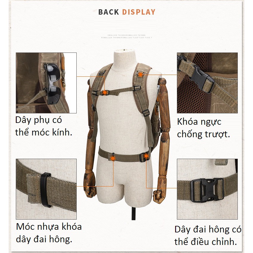_Được làm từ chất liệu vải Canvas có độ bên cao , chống thấm nước , chống mài mòn và không bị mât màu.
