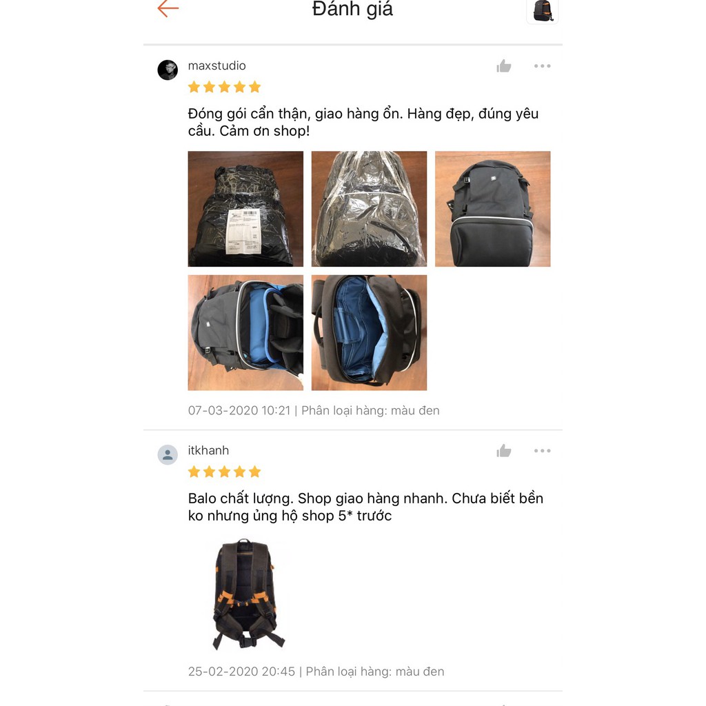✅ Cấu tạo vải chống nước và khả năng chống sốc của các vách ngăn máy ảnh cực tốt.
