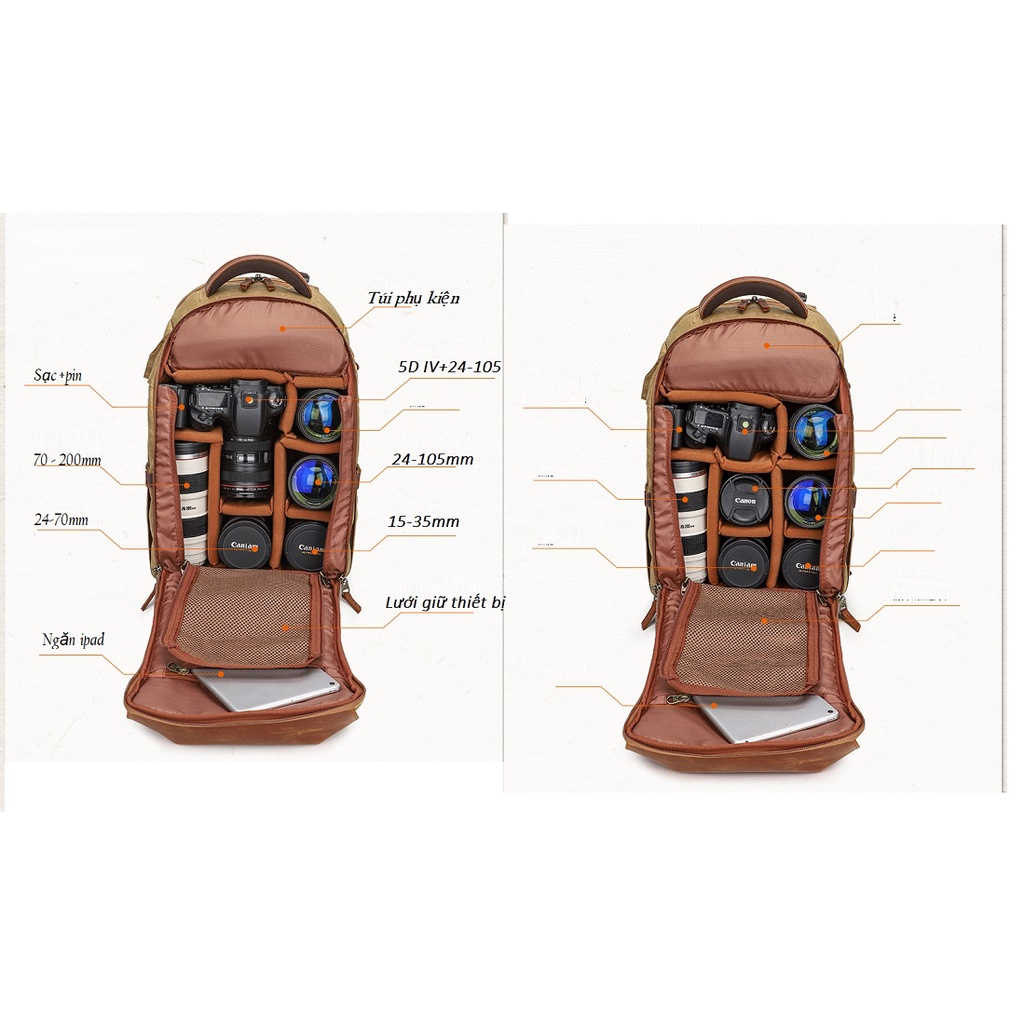Cameras & Flycam > Phụ kiện máy ảnh > Túi đựng máy ảnh || Balo máy ảnh chuyên dụng vải Canvas Vitage.K_805Còn hàng