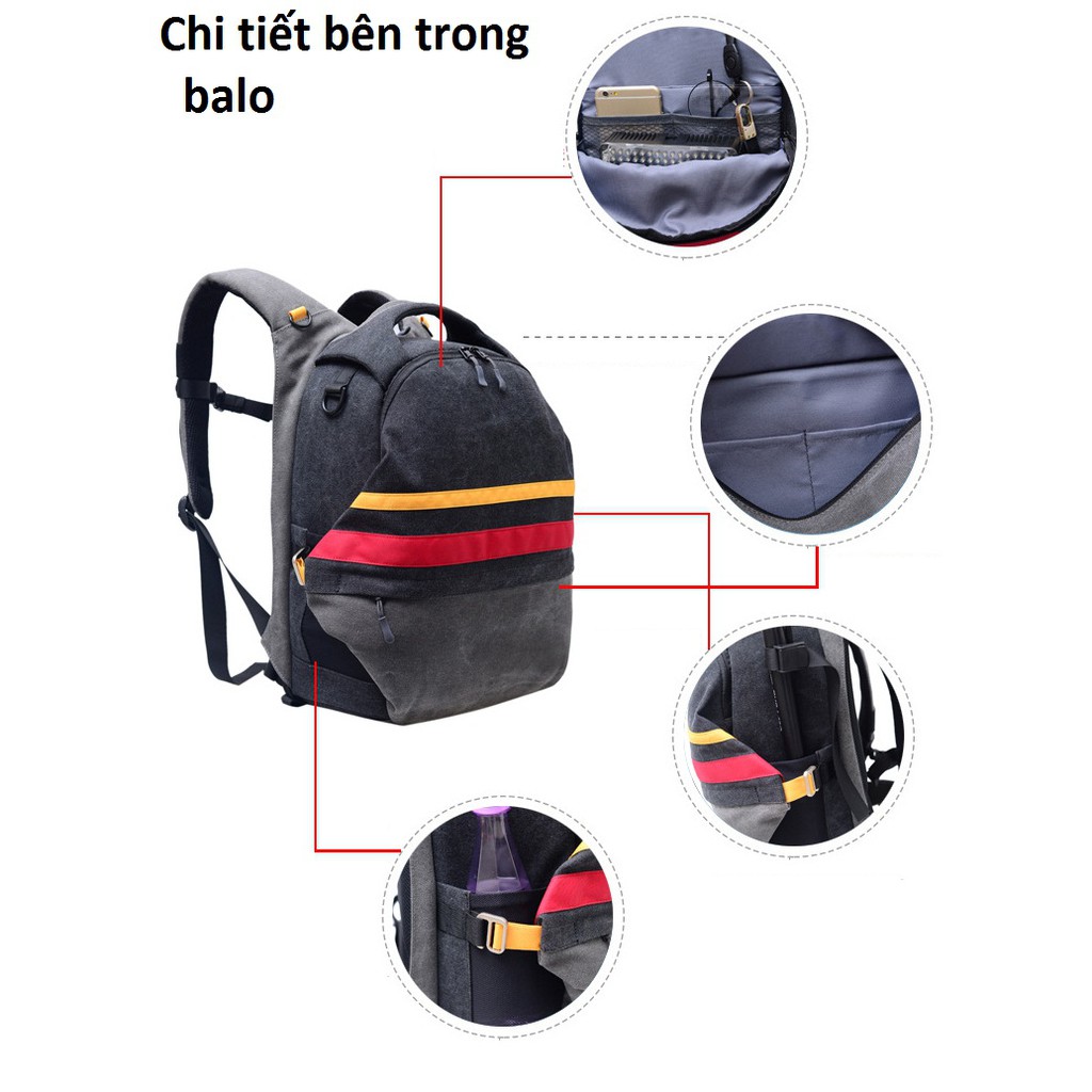 balo có kich thước 42 x27 x20cm.balo sử dụng chât liệu vải chống thấm cao. có áo mưa đi kèm