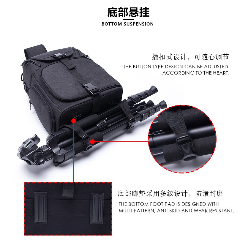 - Chân máy được thiết kế gài phía dưới balo.