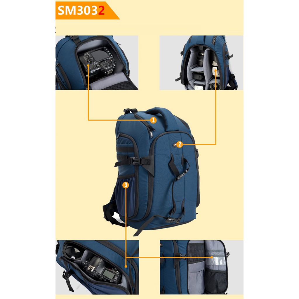 - Sức chứa: SM3031 Có thể chứa một camera, 4ống kính, một đèn flash và một latop nhỏ.