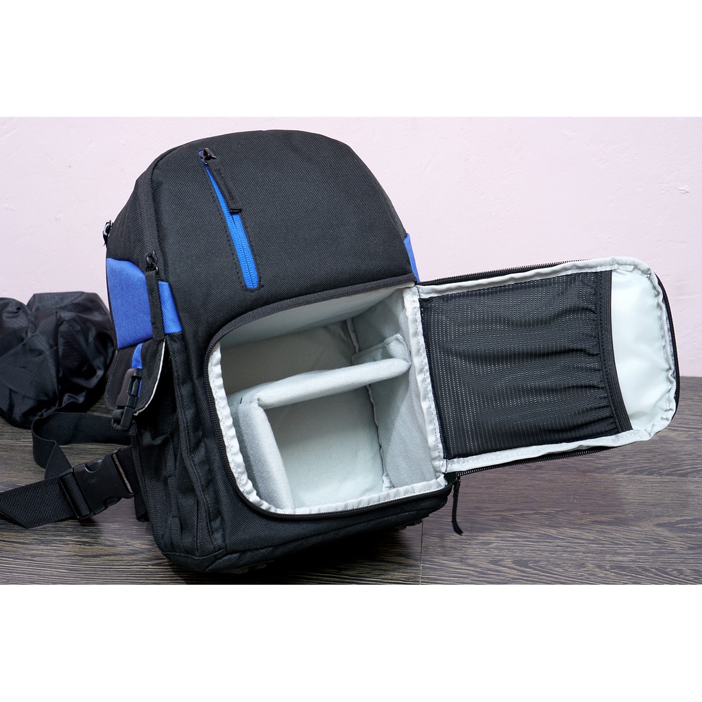 Balo máy ảnh thao tác nhanh đeo chéo 1 quai Caden D5Thiết kế dạng balo 1 quai nhỏ nhắn. Balo có thiết kế ngăn để máy ảnh bên dưới, thao tác lấy máy ảnh nhanh, có thể lấy mặt trước hoặc nắp mở bên hông balo. Nửa trên balo có thể để phụ kiện, bên ngoài có ngăn khóa nhỏ, bên hông có thêm ngăn lưới để bình nước hoặc phụ kiện rất tiện lợi.
