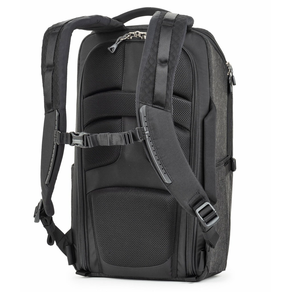 Balo máy ảnh Think Tank Backstory 15 với miệng túi chính ở vị trí phía sau giúp người dùng dễ dàng sắp xếp các thiết bị bên trong , cùng với ngăn phụ phía trên có thể dễ dàng cất và lấy thiết bị một cách nhanh chóng nhất .Ngăn trước sâu có khóa zip đủ chỗ để chứa các đồ dùng cá nhân , bao gồm máy tính bảng 10” và laptop 16” . Quai đeo của balo được thiết kế đặc biệt thoải mái khi sử dụng cùng với đai đeo hông có thể tháo rời đặt sự tiện lợi của người sử dụng lên hàng đầu .