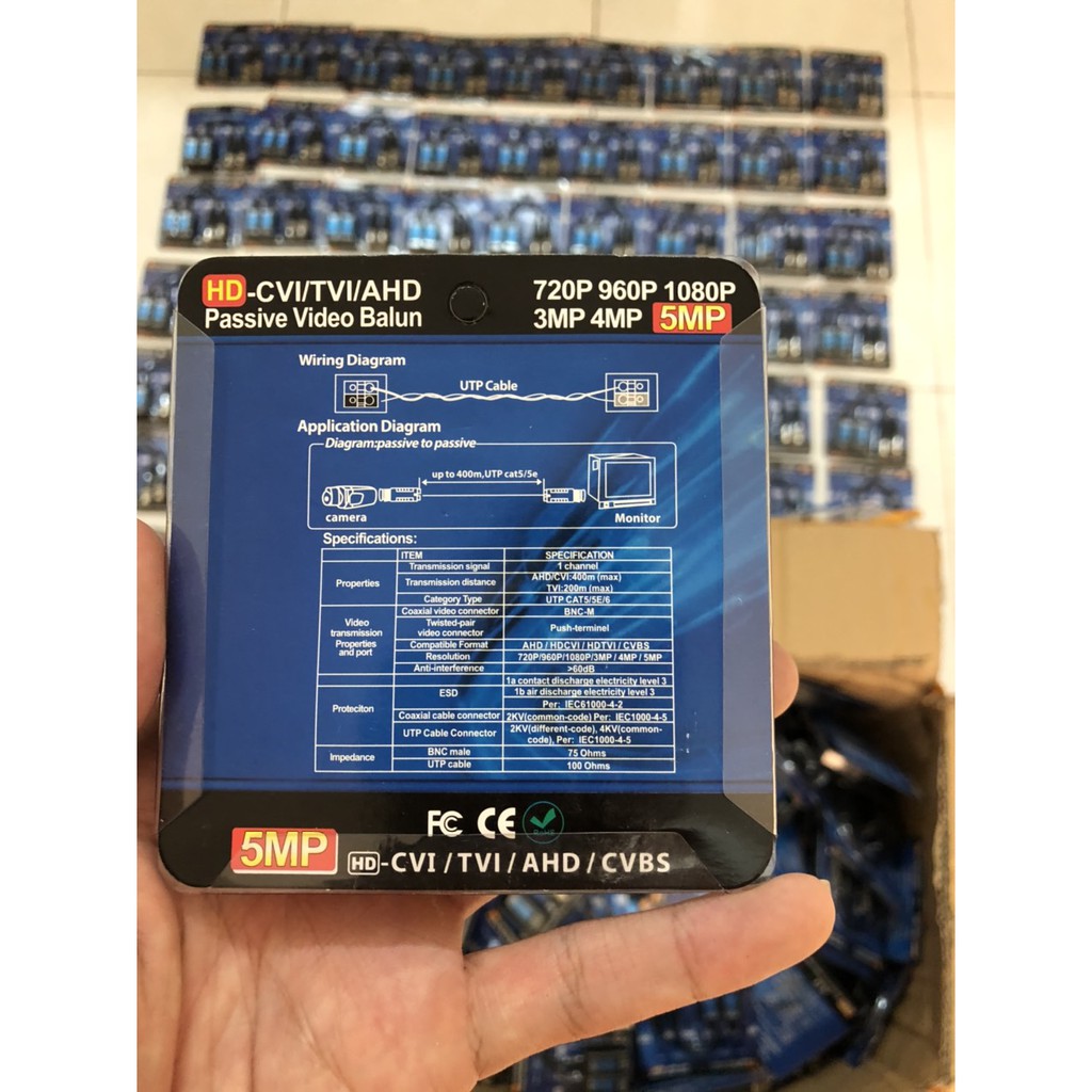 Thông tin sản phẩm:Balun 5MP HD-TVI/CVI/AHD là một cặp đầu nối tín hiệu ho phép một tín hiệu được truyền qua cáp với một giá trị trở kháng mà khi sử dụng lại là một trở kháng khác. Balun HD-TVI tương thích với camera AHD, HD TVI, và CCTV HD-CVI có độ nét cao, balun có nhiệm vụ nhận tín hiệu truyền tải và khuyến đại tín hiệu để bảo đảm tín hiệu truyền về đầu ghi luôn được ổn định, hạn chế nhiễu hoặc tín hiệu âm thanh, màu sắc không trung thực.