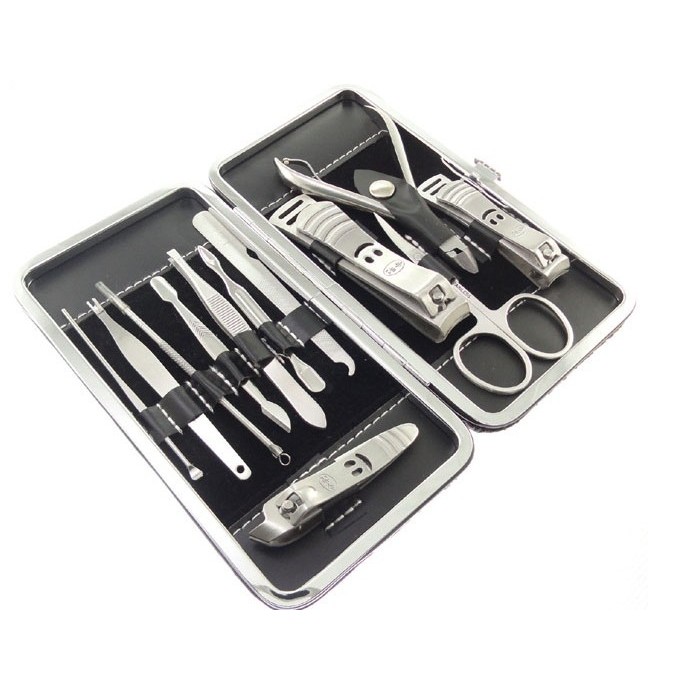 – Bộ sản phẩm gồm 12 món: 3 đồ bấm móng tay lớn + vừa + nhỏ, kéo cắt lông mũi, kềm cắt da, cây nặn mụn, 1 cây móc tai, 1 dũa, 1 nhíp, 2 cây lấy khóe, 1 dụng cụ làm sạch móng.