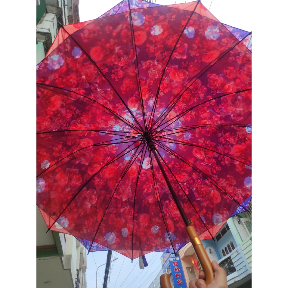 Giới thiệu Dù Bấm Xếp 2 Lớp Cán Gỗ Loại Lớn Cực Đẹp 118X95Cm