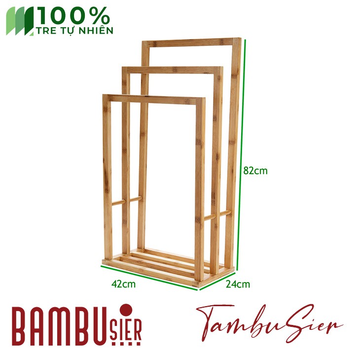 GIÁ PHƠI KHĂN TẮM, KHĂN MẶT, QUẦN ÁO 3 TẦNG ĐA NĂNG BẰNG TRE CAO CẤP XUẤT KHẨU- Kích thước: Dài 42 cm x Rộng 24 cm x Cao 82 cm.