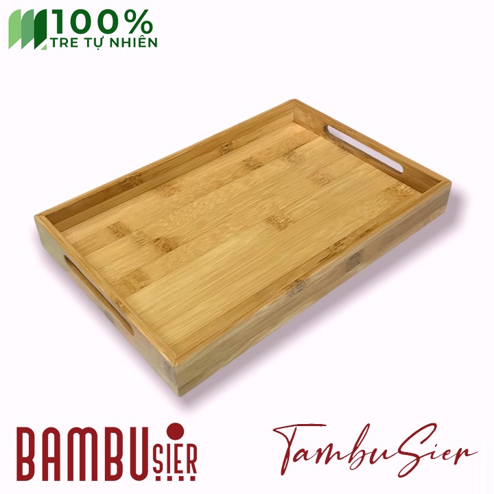 [BAMBOO] Khay trà gỗ tre cao cấp - khay gỗ tre hình chữ nhật - khay phục vụ gỗ tre có tay cầm [LOUISANCE]