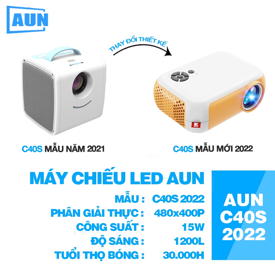 Thiết Bị Điện Gia Dụng > Máy chiếu & Phụ kiện > Máy chiếu & Màn hình chiếu || [BẢN 2022 MỚI NHẤT Máy chiếu mini AUN C40s hỗ trợ fullhd 1080p và kết nối với điện thoại, laptop, máy tínhCòn hàng
