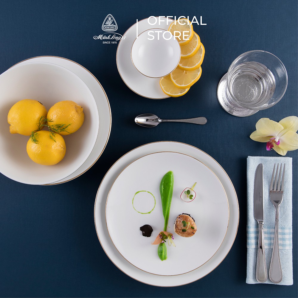 Bộ chén dĩa Minh Long 9 sản phẩm - Daisy IFP - Viền Chỉ Vàng thuộc dòng sản phẩm sứ ngà cao cấp - IFP (Ivory Fine Porcelain) được tuyển chọn từ những nguyên liệu tốt nhất cùng công nghệ phối liệu đặc biệt, qua quá trình kiểm định nghiêm ngặt để tạo ra những sản phẩm vừa đảm bảo kỹ thuật và mỹ thuật với tính năng vượt trội: siêu cứng, chắc, mặt men bóng, khó trầy xước; không chứa chì và cadmium nên an toàn cho sức khỏe;Vẻ đẹp tinh tế từ nước men sáng, màu sứ trắng ngà sang trọng, quyến rũ và thiết kế với nhiều hoa văn đa dạng, nhẹ nhàng, bay bổng, bộ bàn ăn thích hợp trong việc trang trí và trình bày món ăn thêm đẹp mắt, giúp tô điểm sự sang trọng cho bàn ăn gia đình đồng thời thể hiện gu thẩm mỹ, sáng tạo và phong cách riêng của chủ nhân.