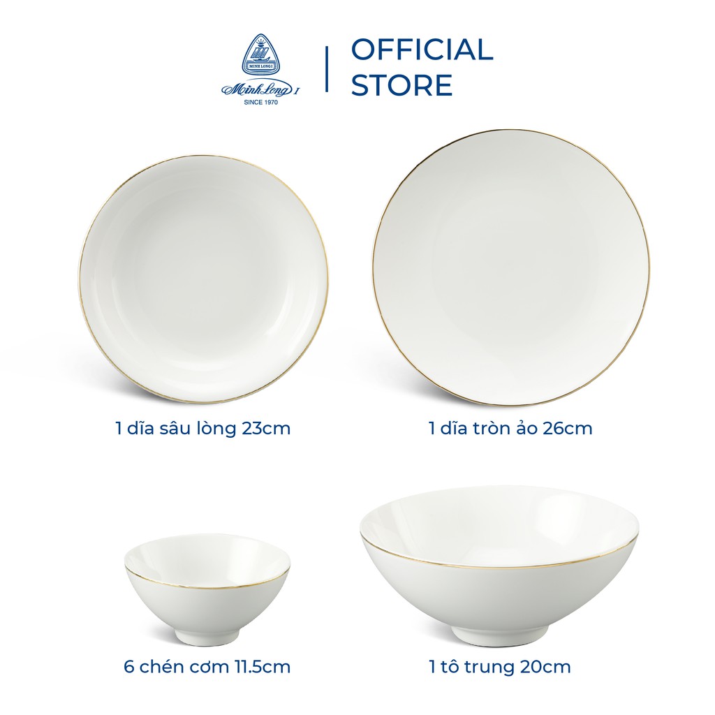 Thành phần bộ chén dĩa Minh Long 9 sản phẩm - Daisy IFP - Viền Chỉ Vàng, gồm:
