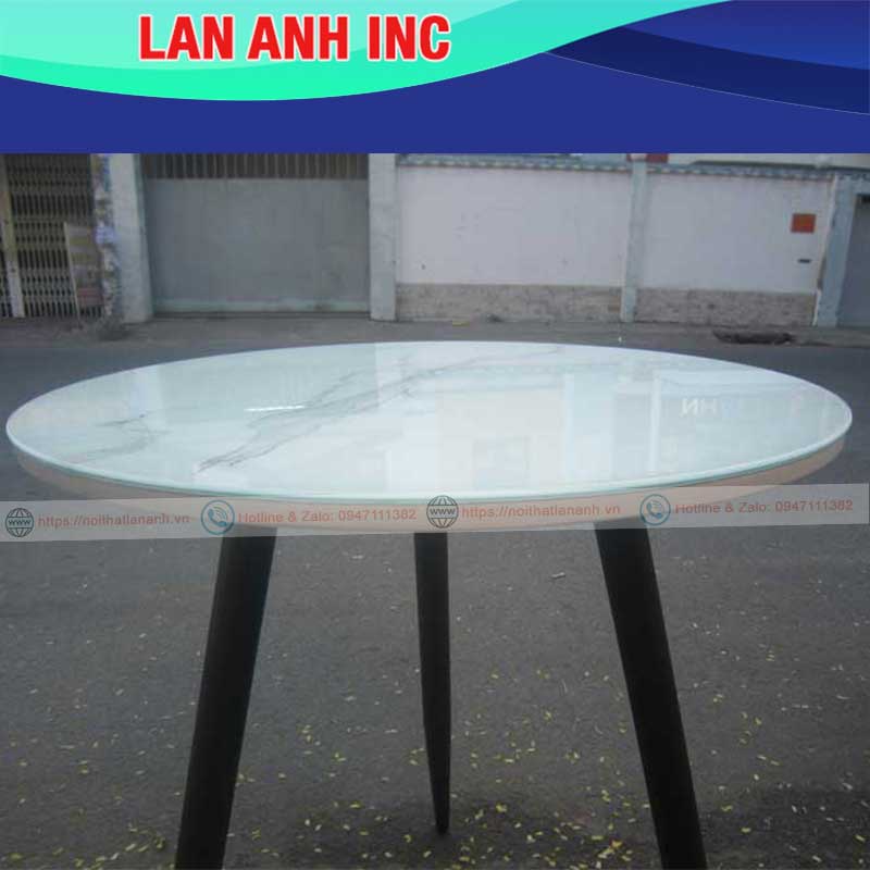 Bàn ăn cafe tròn đẹp chân sắt mặt kính hiện đại nhập khẩu giá rẻ LAB06