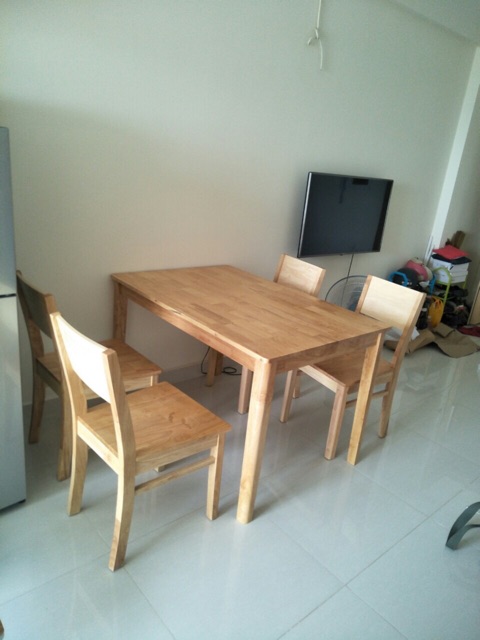 Bộ bàn chery 4 ghếChất liệu gỗ cao su, mặt bàn gỗ cực sang trọng.