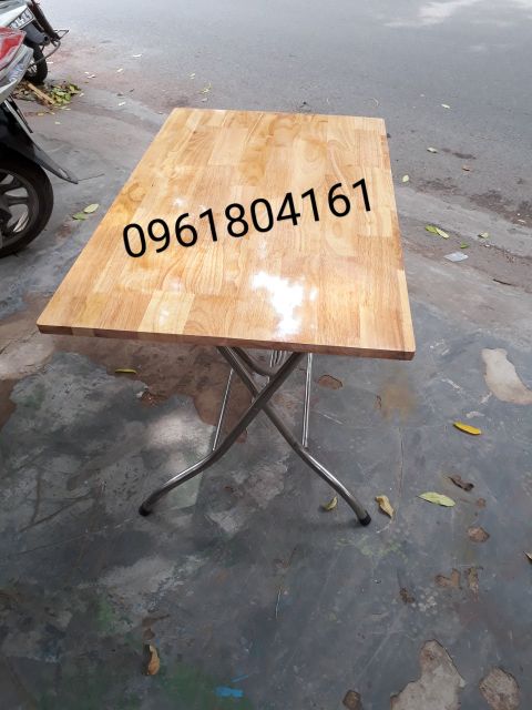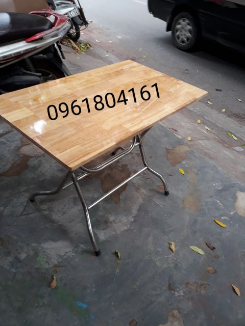 Bàn ăn gấp 50 x 1m - bàn ăn chân i nox mặt gỗ cao su tự nhiên -