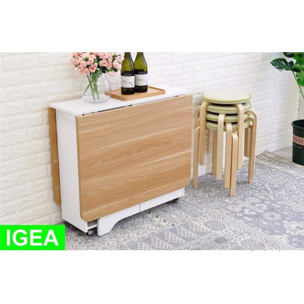 Bàn ăn gấp gọn IGA hiện đại thông minh màu Trắng- Vân gỗ( có bánh xe)- BATM5.31