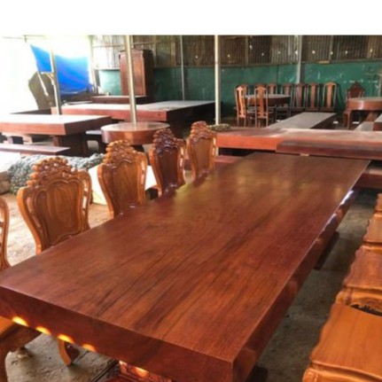 Nhà cửa & Đời sống > Nội thất > Bàn || Bộ bàn ăn gõ đỏ nguyên khối cao cấp 301x90x15cmCòn hàng
