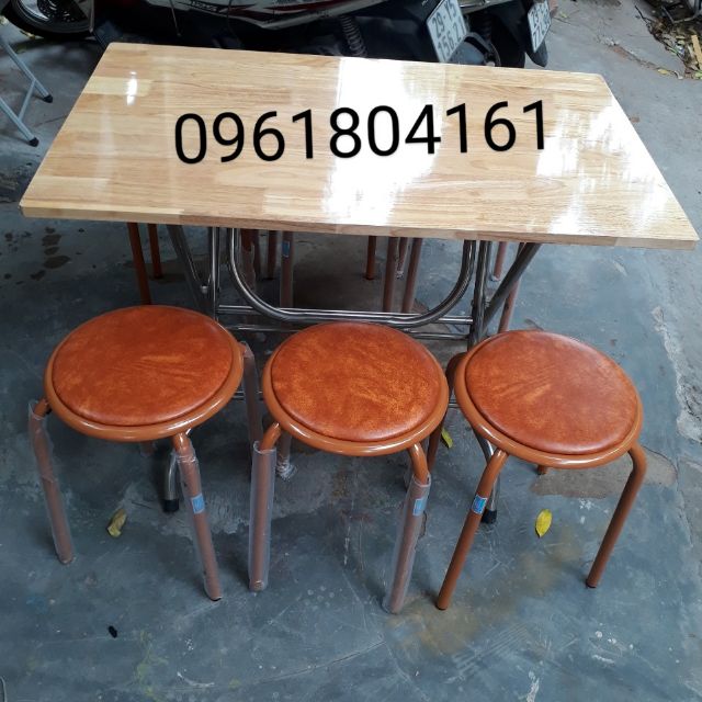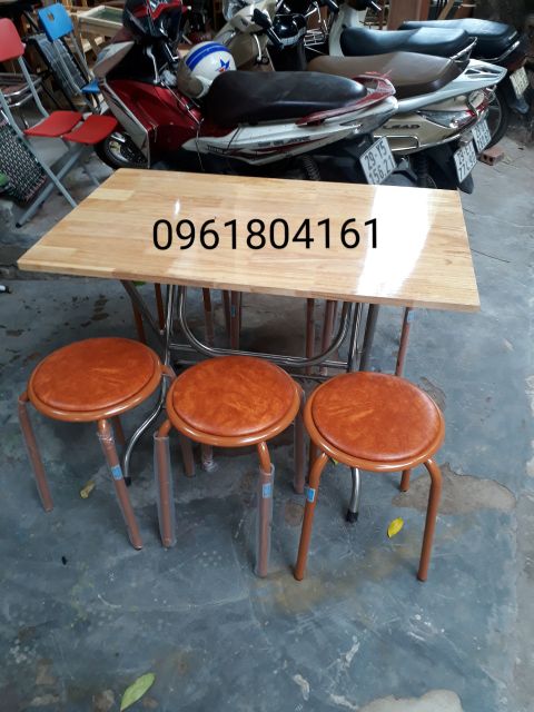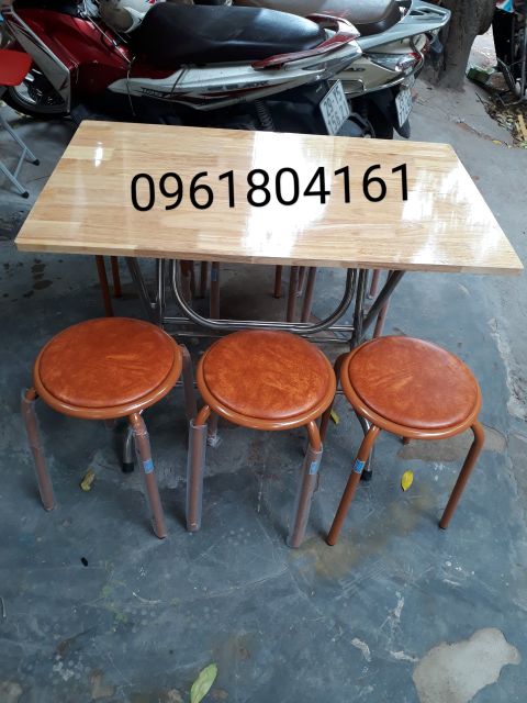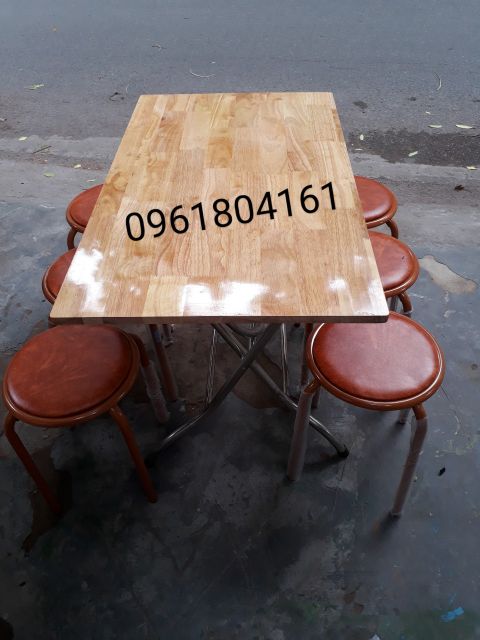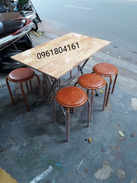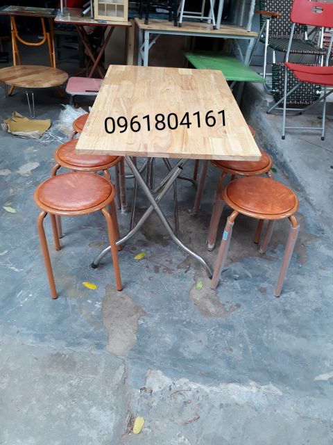 BỘ BÀN ĂN GẤP GỌN CHÂN INOX MẶT GỖ CAO SU TỰ NHIÊN & GHẾ ĐÔN XUÂN HÒA