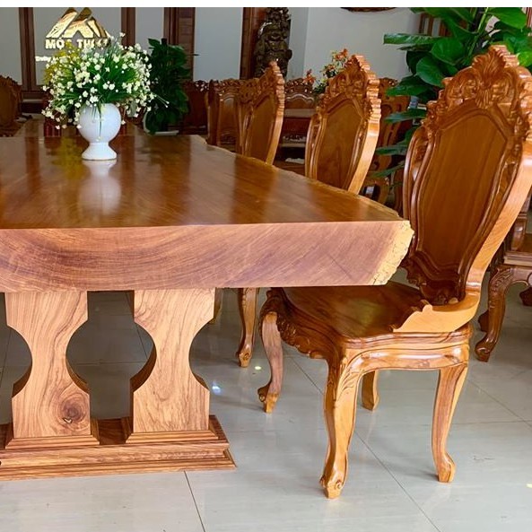 ✔Bàn ăn nguyên khối không tạo cảm giác nặng nề, vẫn giữ được nét hoa mỹ và sang trọng.Càng dùng, gỗ sẽ càng đẹp và bóng, làm sáng bừng không gian bếp ăn nhà bạn.