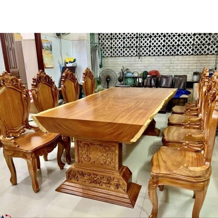Nhà cửa & Đời sống > Nội thất > Bàn || Bàn ăn nguyên khối, gỗ cẩm hồng ghế đục hoa lá tâyCòn hàng