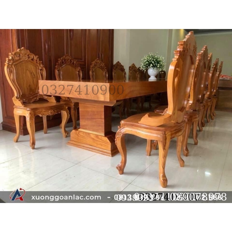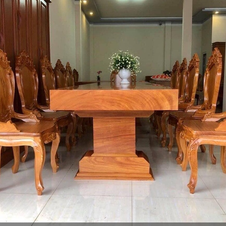 Giới thiệu Bộ bàn ăn nguyên khối gỗ gõ đỏ 10 ghế đục hoa lá tây