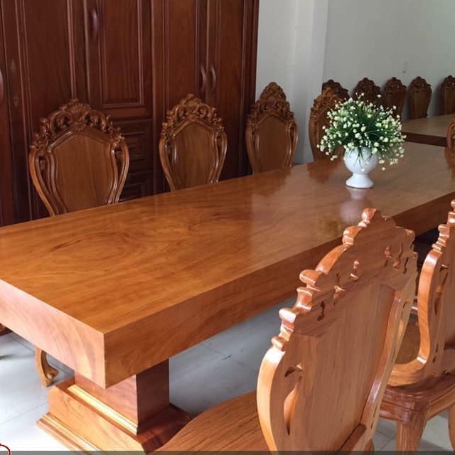 Bàn ăn nguyên khối gỗ gõ đỏBàn ăn gỗ rộng hình chữ nhật vuông vức, quy cách 1 tấm nguyên khối không chắp ghép.