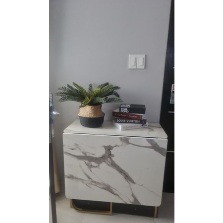 - Bàn ăn có thiết kế thông minh gập nhỏ gọn khi không sử dụng đến giúp bạn tiết kiệm được rất nhiều diện tích sử dụng. Gầm bàn còn có kệ để đồ vô cùng tiện lợi khi sử dụng hàng ngày.