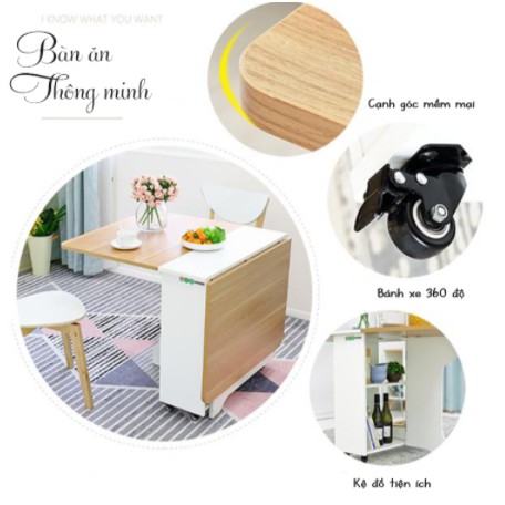 Nhà cửa & Đời sống > Nội thất > Bàn || Bàn ăn thông minh gấp gọn, bàn ăn có bánh xe di chuyển tiện lợi - BATM5Còn hàng