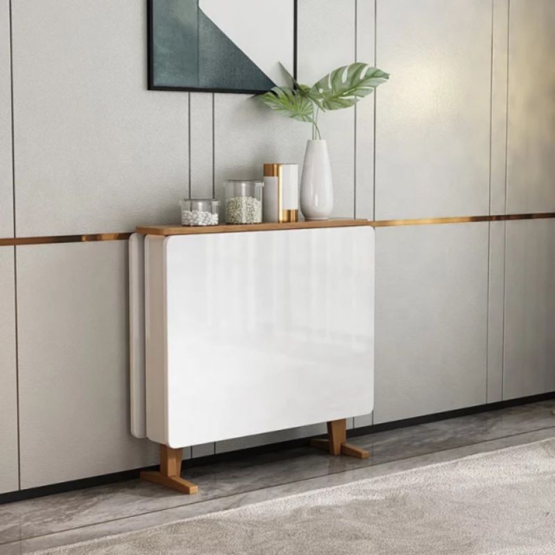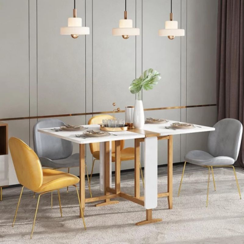 - Bàn ăn có thiết kế thông minh gập nhỏ gọn khi không sử dụng đến giúp bạn tiết kiệm được rất nhiều diện tích sử dụng. Gầm bàn còn có kệ để đồ vô cùng tiện lợi khi sử dụng hàng ngày.