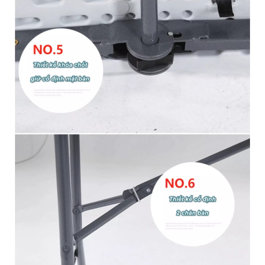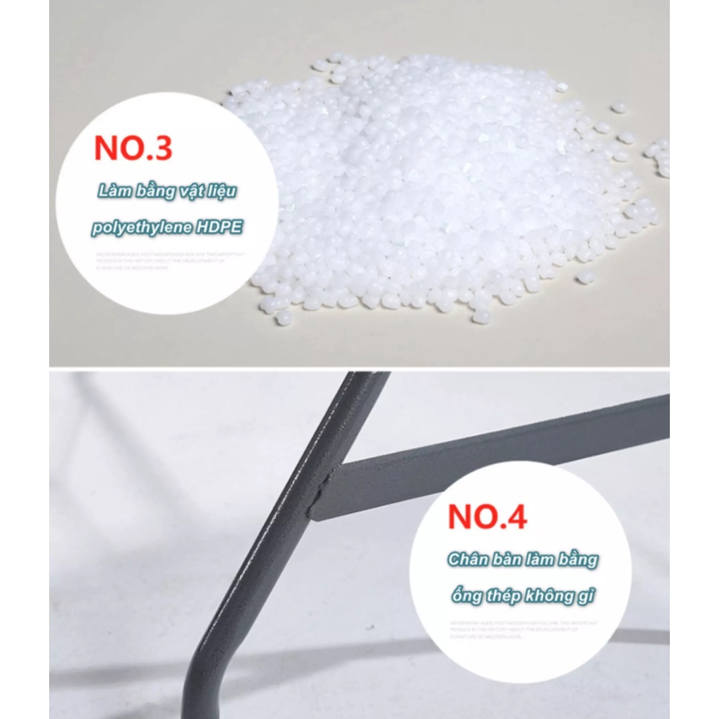- Mặt bàn làm bằng chất liệu HDPE , chân bàn được làm bằng vật liệu thép không gỉ và rất bền bỉ.