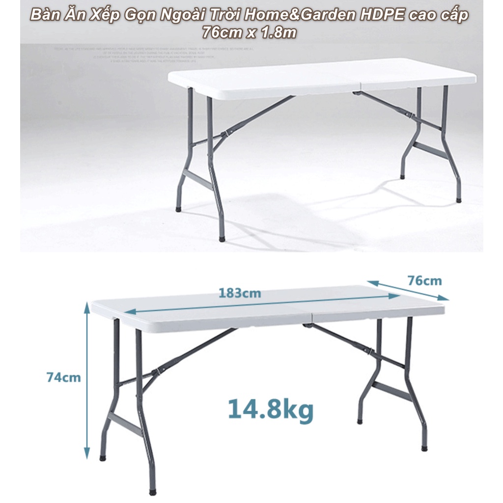 Bàn Ăn Xếp Gọn Ngoài Trời Home&Garden HDPE cao cấp 76cm x 1.8mĐẶC ĐIỂM NỔI BẬT :